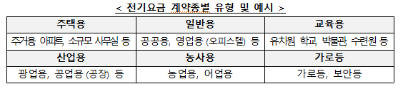 ③ 일반용, 산업용, 농사용, 교육용 혹은 주택용 중 비주거용 전기요금을 부담하는 사업자