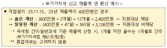 ② 22년 혹은 23년 부가가치세 신고매출액이 3,000만 원 이하인 사업자